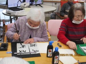 囲碁・将棋・書道・塗り絵・脳トレなど、興味に合わせて選べる個別レクリエーションをご用意。スタッフが寄り添いながら、楽しみや得意を伸ばすお手伝いをしています。